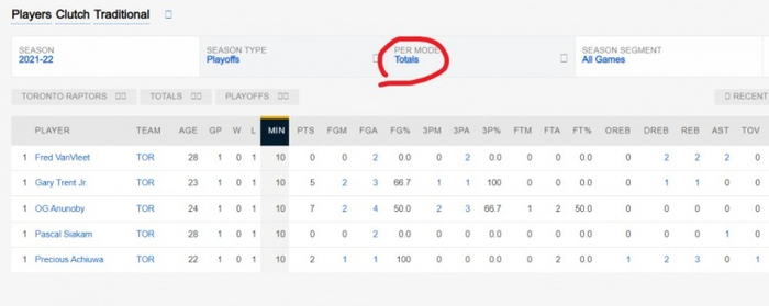 猛龙球员出现10.1分钟的场均关键时刻系官网数据显示错误,从“场均时间”改成“总时间”之后就正常显示为10分钟的关键时刻(猛龙vs76人G3打了一节加时赛)。