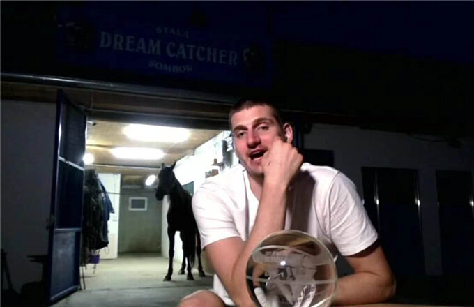 今天约基奇在自家的马厩中领取了MVP奖杯,这个典礼看起来很不寻常。没有山呼MVP的球迷,没有无数闪烁的聚光灯,有的只是球队管理层和亲朋好友。约基奇乘坐一辆一匹马力的板车缓缓出场,头顶上是家乡的和暖日光。万众瞩目的关注对约基奇而言仿佛可有可无,面对那些赞美与荣耀,他可能更喜欢喝可乐和开玩笑。形式从来都不重要,持球的5号位,可以打破球场的一切规则。