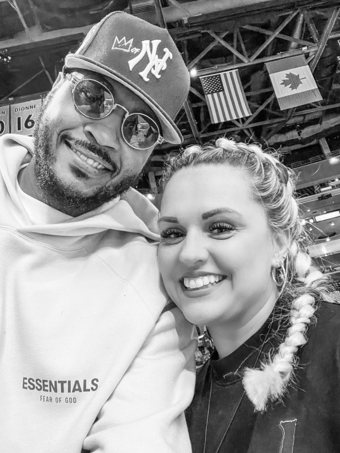 观战的NBA球星中就有卡梅隆-安东尼,在甜瓜的允许之下,女记者Dia成功和他完成了合影。