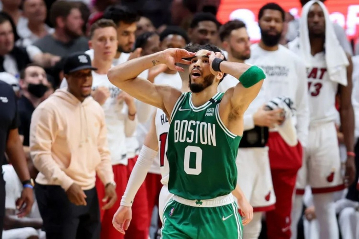 热火在前两节并没有给对手太大的压力,只是用换防、联防应对,因此塔图姆的开局打得非常顺利。他在上半场14中9,其中8个球是在三秒区内,进了一个三分,半决赛面对大洛和字母的那种窘迫感,不复存在,21分也是他在季后赛上半场的个人得分最高,他虽然年纪轻轻,却已经打过11轮季后赛,共61场。
