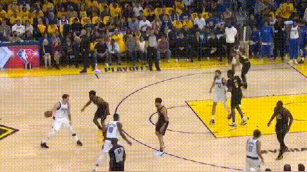 勇士的防守,后续还有很多变化,大概规律是,盯人效果下滑换32联防,独行侠一旦进三分,再改回盯人。第三节的时候,勇士又提升了对球防守侵略性,冷不丁夹击东契奇。勇士几乎不会连续半节球对东契奇守一种策略,真挺考验东契奇应变的。