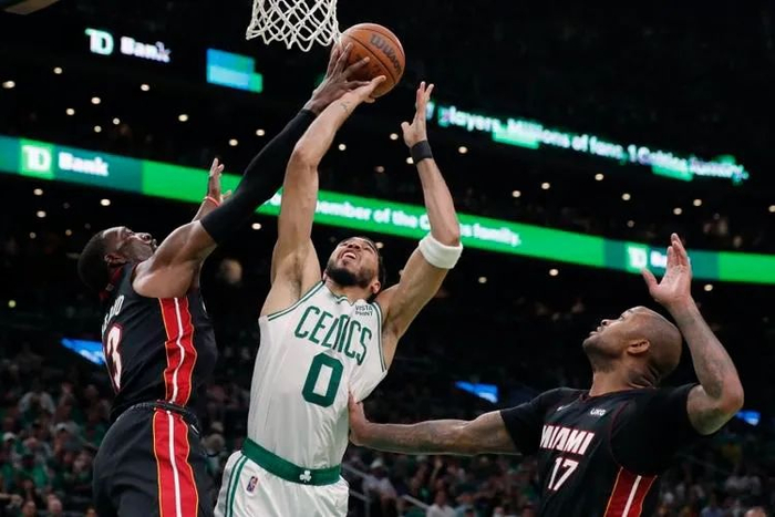 热火给了塔图姆和杰伦足够的单防强度,如果他们找到斯特鲁斯,且在热火协防到来前解决了问题,那没有办法。若是正常的对位,PJ塔克无时不在的对抗,让塔图姆做每个动作都难受。而奥拉迪波——下半场临危受命顶替巴特勒——几乎不让杰伦在他面前运球,面断双探花的单防功力,不禁让人感慨,这一端的苦曼巴,从来都是他。