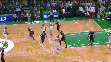 这是绿军留给热火的“缝隙”,也是我们在前瞻里提到的——绿军恐怕不会换防一切,起码热巴做掩护的时候,绿军或许不太想换。这个“缝隙”就决定了热火系列赛进攻打得如何。