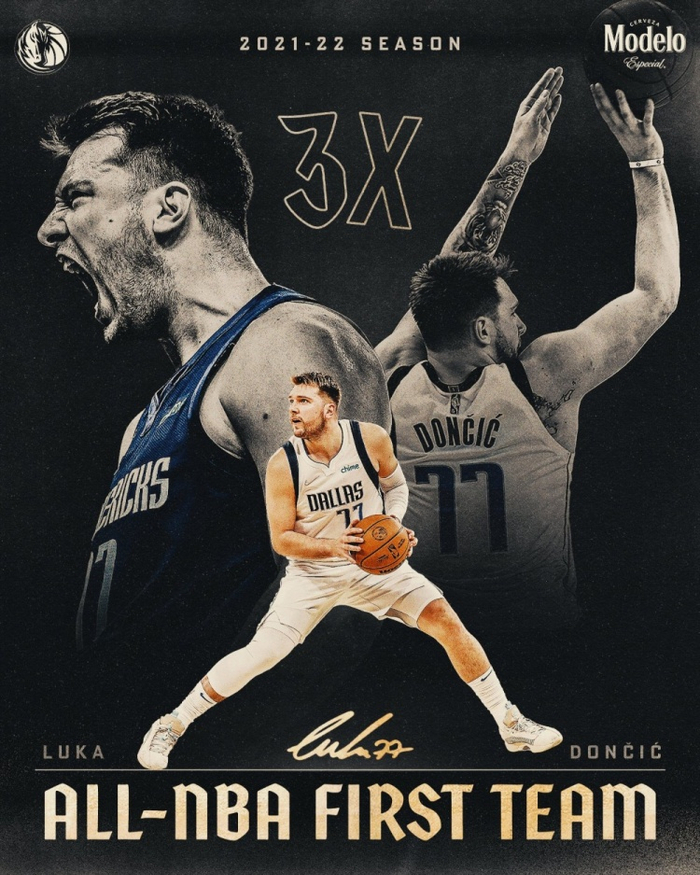 直播吧5月25日讯 NBA官方今日公布21-22赛季最佳阵容名单,独行侠球星东契奇入选一阵。