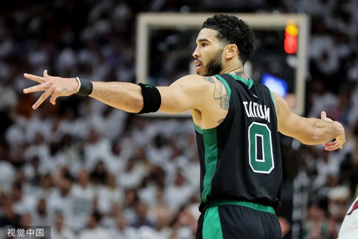 而那一边,塔图姆还在抓着热火的防守人肆意点名。在下面这球打进之后,热火叫出了暂停。而在打进之前,塔图姆和杰伦还各进了一个不讲道理的三分.......