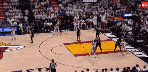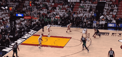 斯波没有再继续使用终极五小极限施压(这是他们在罗威下场之后逼得凯尔特人连续失误差点送走自己的关键),阿德巴约下半场首发中断了热火对绿凯持球人的逼抢压力。