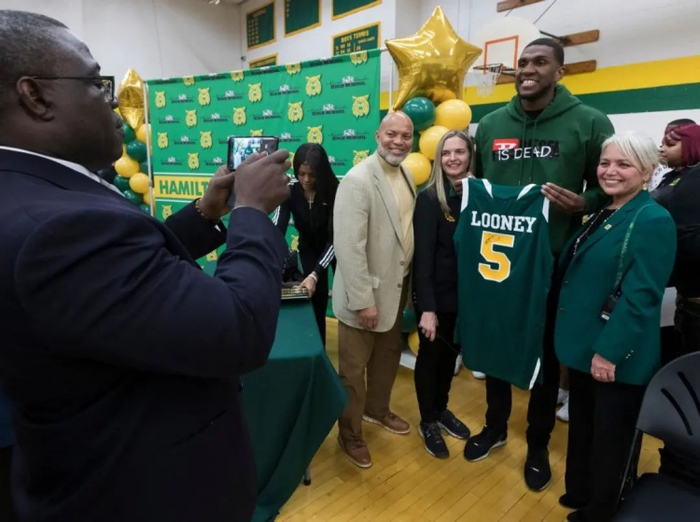 2018年夏天,卫冕冠军勇士队全员出动,参加队内一名球员的高中球衣退役仪式。这么有牌面的事儿,主人公却并不是哪位球星,而是三年级的凯文-卢尼。