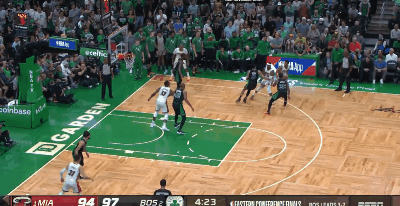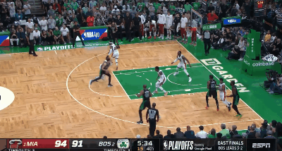 当霍福德在第四节命中他全场的唯一进球(8中1)后,凯尔特人队也终于和热火队在比赛结束5分30秒时战成了平局,胜利的天平似乎就要倾斜过去了。