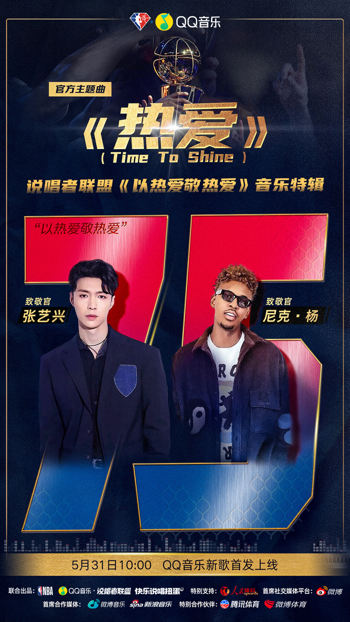 球场上他们用热爱演绎NBA精神,球场下我们用音乐让热爱一直延续。NBA75周年之际,张艺兴与球星尼克·杨共同打造QQ音乐XNBA75周年官方主题曲《热爱(Time To Shine)》。