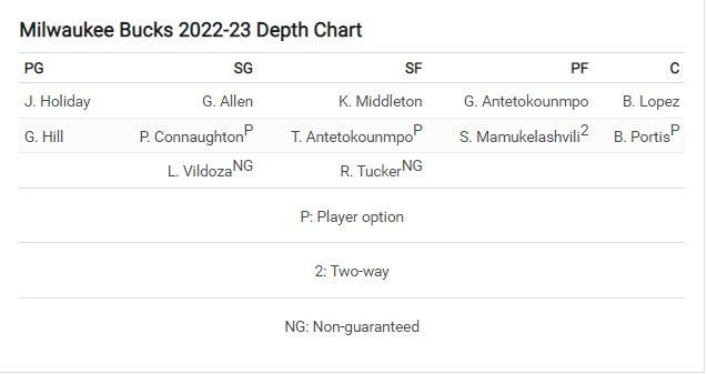 控卫:朱-霍勒迪,乔治-希尔;分位:格雷森-阿伦,康诺顿,维尔多萨,雷琼-塔克;小前锋:米德尔顿,T-阿德托昆博;大前锋:字母哥,马穆克拉什维利;中锋:大洛佩兹,波蒂斯。