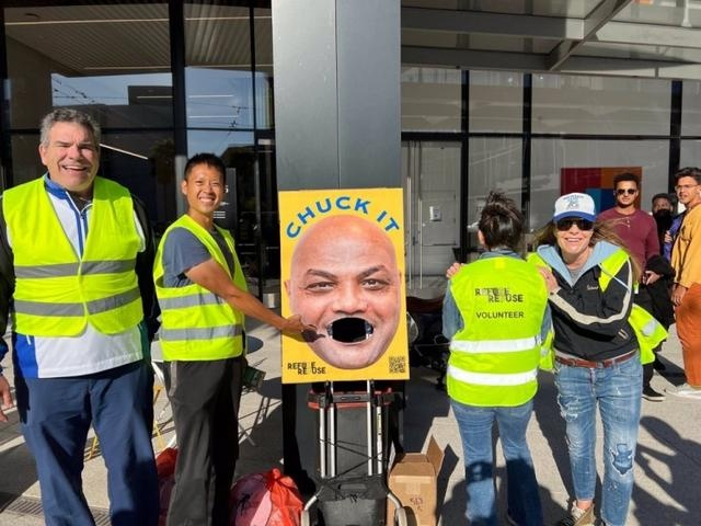 NBA名宿巴克利和勇士球迷的“恩怨情仇”大戏在今天达到了一个小高潮,有勇士球迷在主场球馆外将巴克利的大头海报做成了个性垃圾桶,令人莞尔。
