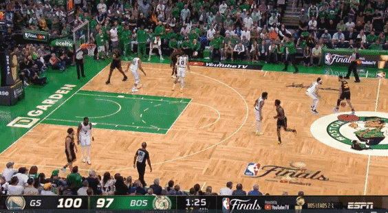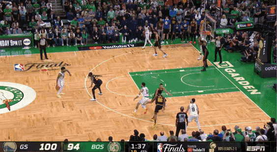第一次是在比赛结束前1分36秒,当时塔图姆突分助攻霍福德轰进三分,绿军将分差缩小至3分。报告显示,塔图姆运球时抬起了轴心脚再落下,漏吹走步。