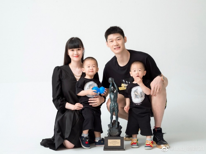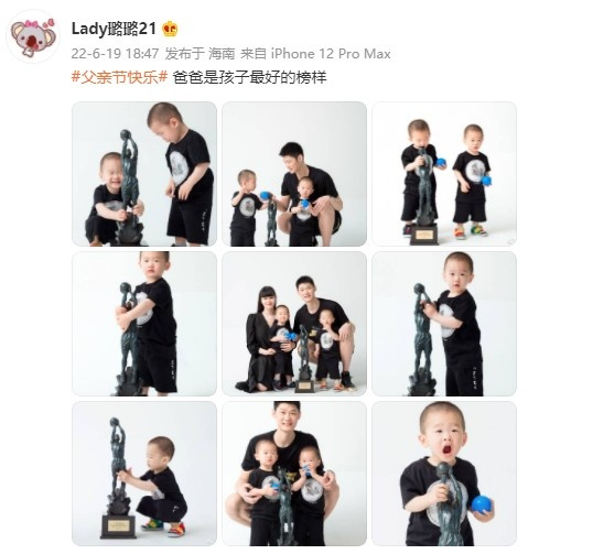 直播吧6月19日讯 广厦男篮球员胡金秋妻子王璐更新社媒,晒出一组家庭合照。