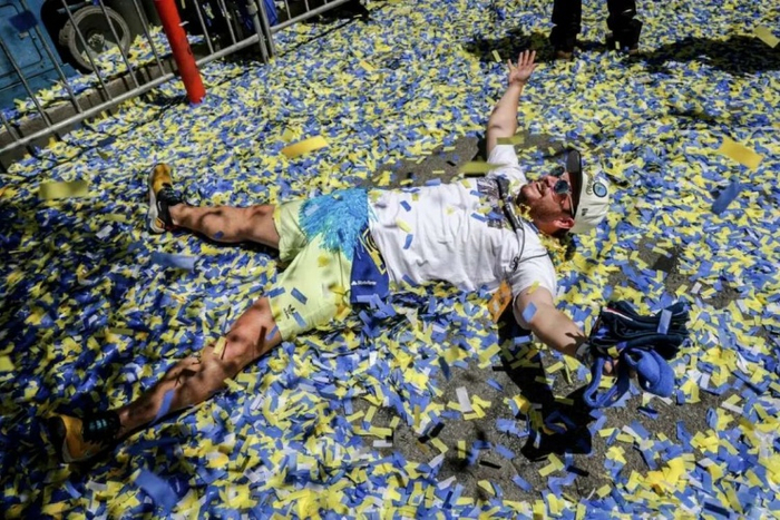 这天的游行非常疯狂,尽管有严密的安保组织,但仍然会碰到人群中伸出来的手拉扯,有时候限制区内会混入球迷。汤普森第一次下车时,往四周一看,觉得不妙,在安保人员的提醒下,立刻躲回了车内。