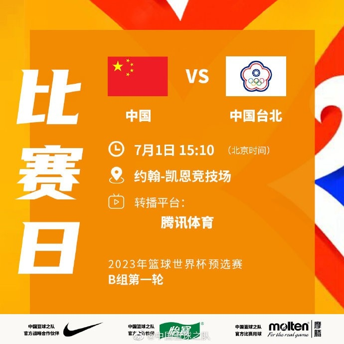 直播吧7月1日讯 2023男篮世预赛B组 中国男篮VS中国台北队12人大名单出炉: