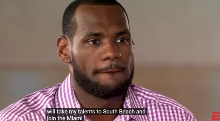 7月9日,詹姆斯在ESPN为其制作的“The Decision”直播节目中宣布“这个秋天,我将把天赋带到南海岸,我选择加盟迈阿密热火。”热火三巨头时代正式开启。7月10日,詹姆斯、韦德、波什合体亮相发布会,迈阿密全城为之疯狂。