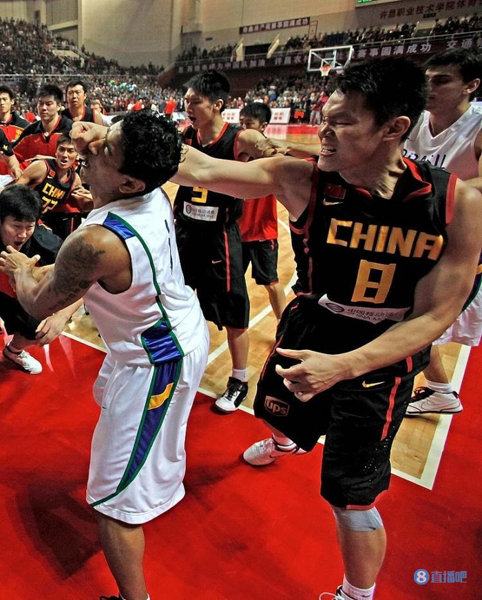 亚运会前热身赛,中国男篮对阵巴西队,南美劲旅全场小动作不断,在张庆鹏遭遇违体犯规,邓华德投诉无果后,冲突一触即发,终于朱芳雨被对手的再次脏动作彻底激怒,球场化为拳台,巴西队求锤得锤。
