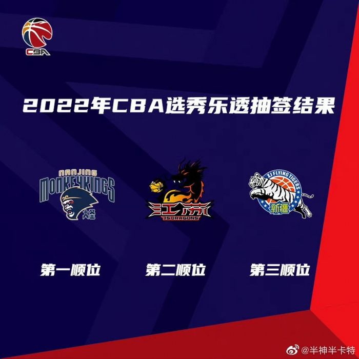 在此前进行的选秀乐透抽签仪式中,南京同曦队抽到状元签,江苏肯帝亚拿到榜眼签,新疆广汇获得第三顺位。