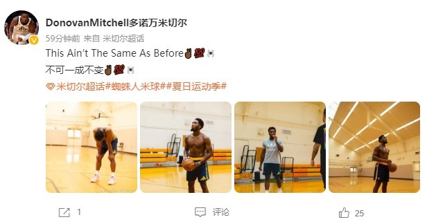 微博晒出多张米切尔训练的照片,并写道:“不可一成不变✌🏾💯🕷”