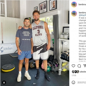 直播吧7月25日讯 近日,美国训练师Ben Bruno更新社交媒体,晒出了与勇士球星克莱-汤普森的训练照。