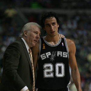 马努-吉诺比利于1977年7月28日出生在阿根廷布宜诺斯艾利斯省布兰卡港,在1999年NBA选秀中他以次轮第57顺位被马刺选中,于2002年正式加盟NBA。在马刺他与“石佛”邓肯、“法国跑车”帕克组成的“GDP”组合名震联盟,共斩获四座NBA总冠军(2003年、2005年、2007年、2014年)。马努个人则在2008年荣膺NBA最佳第六人,两度入围NBA全明星阵容(2005年、2011年),在2018年他成为马刺队史抢断王。由于球风飘逸,时常奉献神出鬼没的传球以及灵动的上篮,吉诺比利收获了“妖刀”的外号。