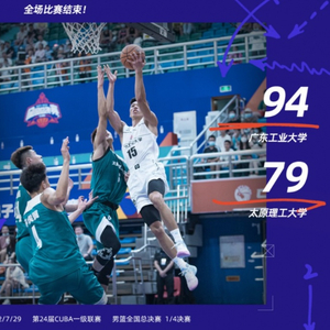第三节广工工大命中率有所下降,太原理工单节25-21广东工大,缩小了一定分差。末节双方没有更激烈的对抗,太理也没能进一步缩小比分差距,最终广东工业大学以94-79战胜太原理工大学,轻松晋级全国四强。