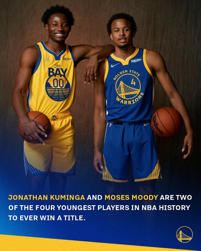 新秀赛季,库明加和穆迪跟随勇士队夺冠,他们成为NBA历史上四位最年轻夺冠球员中的两位(都出生于2002年)。