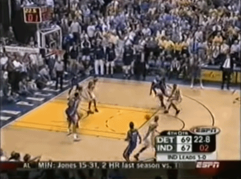除了一攻一防的内外双核,步行者整体阵容也相当不俗,队史传奇雷吉-米勒虽然进入生涯末期,但仍能提供不俗的外线火力,板凳匪徒艾尔-哈灵顿(场均13+6)在最佳第六人评选中排名第二,此外,他们还有一些诸如贾马尔-廷斯利,肯尼-安德森和杰夫-福斯特这些让人记得住名字的球员,看起来,这支球队拥有在那个年代夺冠的一切条件:一个具备统治力的大个子、一个年度最佳防守球员、一个传统神射手分卫、顶级的防守能力以及极具深度的轮换阵容。