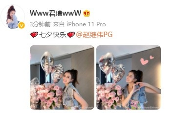 王君瑞晒出一组照片并写道:“💕七夕快乐💕@赵继伟。”