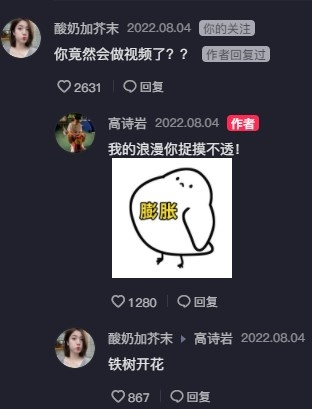 随后,高诗岩还在评论区对其女友说:“七夕快乐哦。”