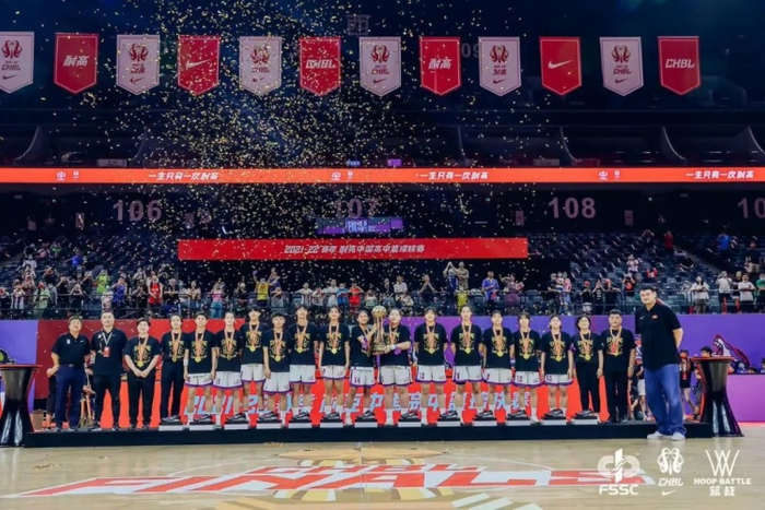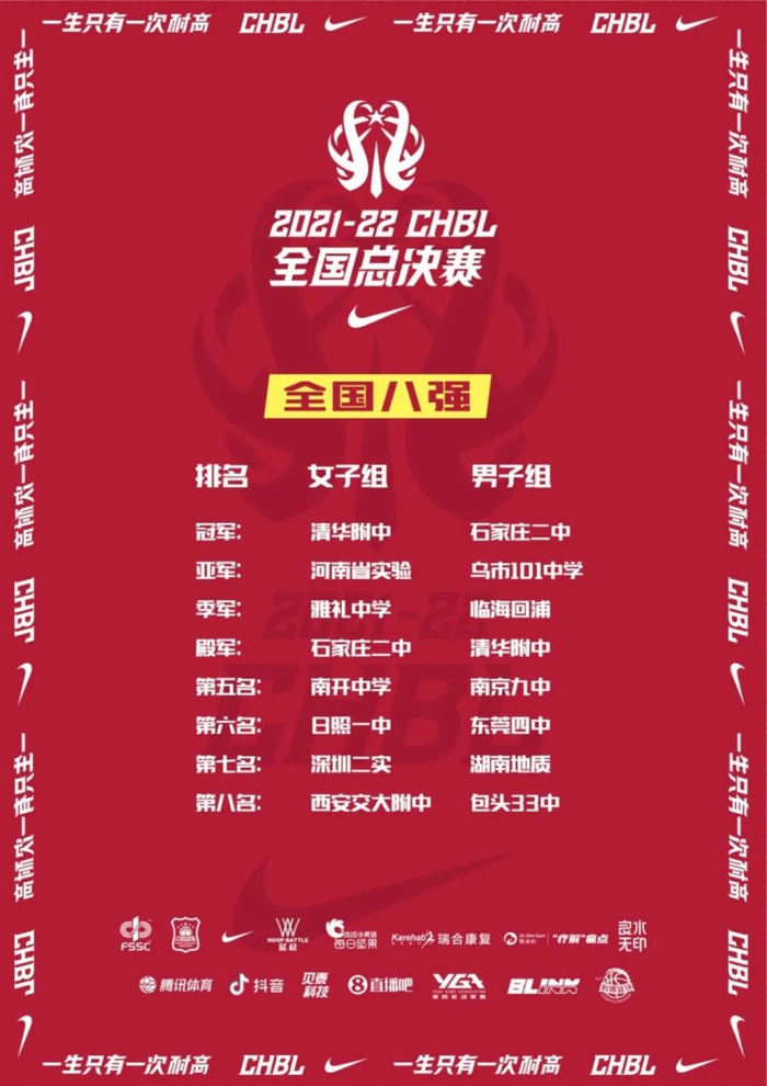 由中国中学生体育协会和中国篮球协会共同主办,篮战(北京)体育文化传播有限公司独家商务运营的2021-22赛季耐克中国高中篮球联赛,从2021年10月开始的基层赛,到2022年7月24日尘埃落定的分区赛,来自22个开展赛区的省、自治区、直辖市及10个外卡城市的271支男子、118支女子共389支高中篮球队的近五千名男女高中生球员不断拼搏,全力以赴,最终决出女子男子各8支球队齐聚广东佛山,在全国总决赛的最高舞台上展现风采,诠释“一生只有一次耐高”的篮球精神。