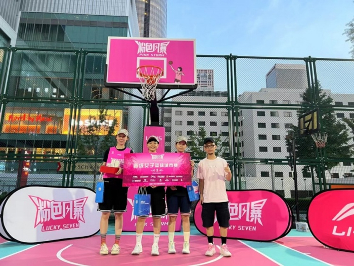 粉色风暴赛事报名通道已开启,搜索官方公众号“粉色风暴女子篮球”即可报名。上场吧女孩,国贸灯光粉色球场见!
