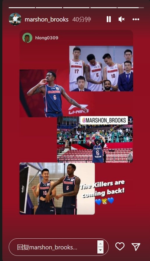 广东外援马尚-布鲁克斯更新INS,晒出了赵睿自宣留队及与赵睿的赛场照,配文写道:“醒来就看到好消息!杀手们回来了!”
