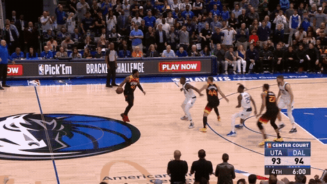 当然,无球进攻包含很多内容,不只是接球投三分。身边有一个持球人允许米切尔(或者是加兰)去寻找对手防线的弱点,然后展开攻击。
