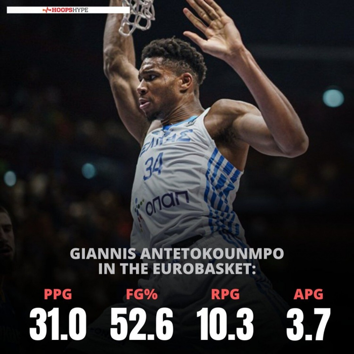恐怖!字母哥欧锦赛至今场均31分10.3板3.7助 命中率高达52.6%
