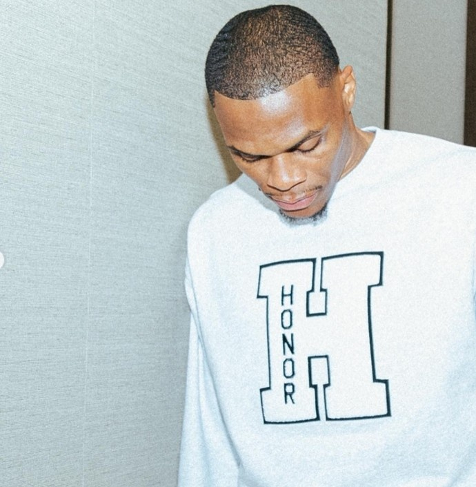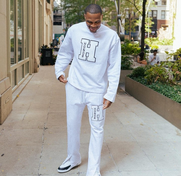 直播吧9月15日讯 湖人球星威斯布鲁克今日在个人INS晒出一组身着其个人潮牌Honor The Gift的穿搭照。