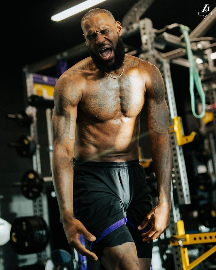 湖人官推晒詹姆斯赤膊训练照:明天就有比赛啦💥