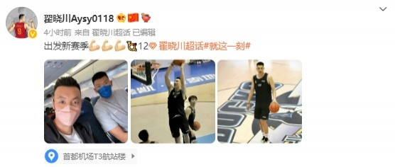 队长翟晓川写道:“出发新赛季💪💪💪📯12。”