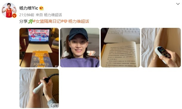 看书与做康复 女篮队长杨力维分享隔离生活日常照