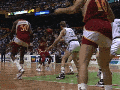 有不可思议的反射神经、移动和弹跳,所以1988年对凯尔特人系列赛,施展过这么个球: