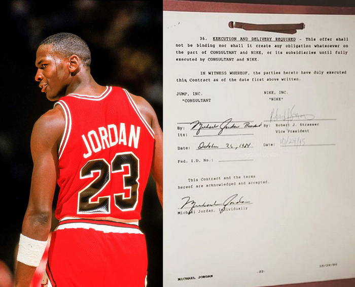 就在同一天,乔丹与耐克签下了5年250万美元的天价代言合同。当时NBA头部球星的代言合同约为每年10万美元。