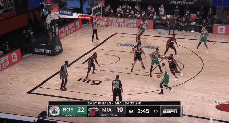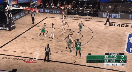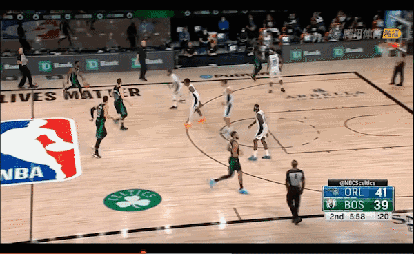 凯尔特人为这个战术打造了更精良的走位——主要是利用了肯巴良好的持球摆脱以及有很好的自主进攻能力。