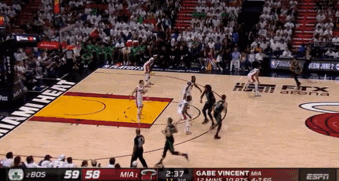 波士顿凯尔特人在上赛季东部决赛中就经常用“wdk”做起手式,并最后用“Gap”结尾来攻击热火的联防: