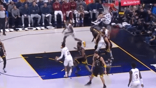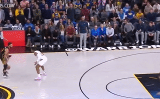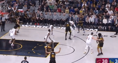 上半场追梦跟莫布里捉迷藏,连卢尼也有样学样;喂兰姆的空切。上半场追梦就8个助攻,JB教练大概看出端倪,下半场开始,控制勇士的传切。