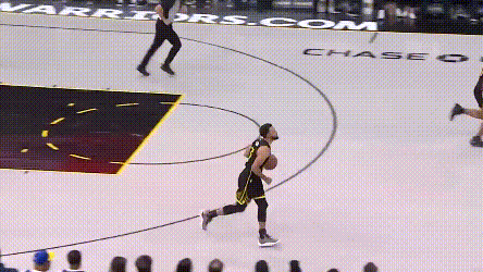 第一次,第三节中段,勇士4分钟未得分,骑士隐隐有温水煮青蛙拉开分差的趋势。这段时间里,你很难说勇士犯了什么错误,防守不差,但莫布利阿伦等人有前板,进攻不乱,就是跑不出机会。于是库里就来了,他做了一件很怀旧的事——追打乐福。
