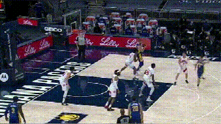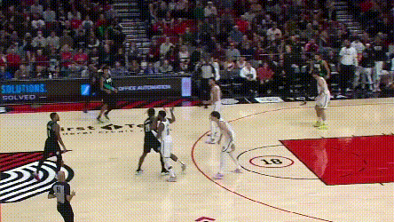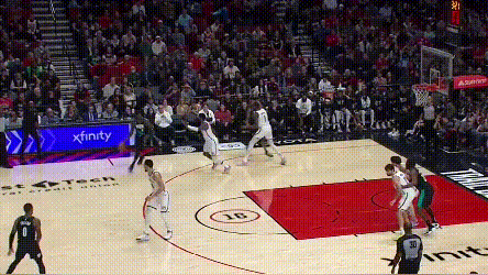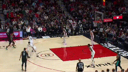 每个比赛夜晚,NBA球员都会完成无数次类似的归位,本不是什么稀奇的事情。但如果仔细看渡边的技术动作,会感慨渡边的扑防竟是如此精准,在缓一点大约就被过了,再凶一点又可能犯规,要恰到好处地控制身体。这不是偶然,在篮网与开拓者的比赛里,渡边继续上演了这样的位置把控: