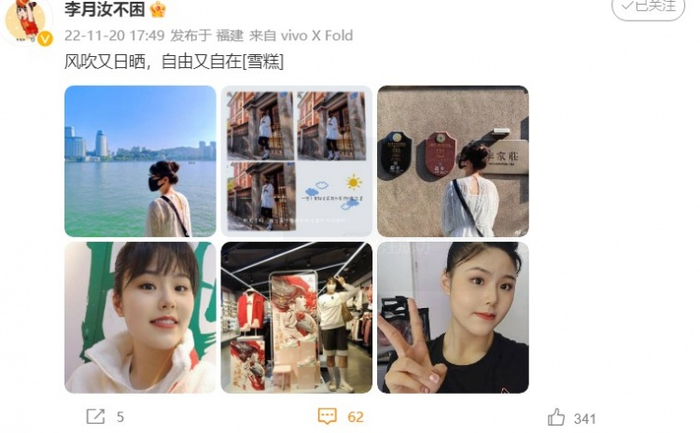 直播吧11月20日讯 今日中国女篮球员李月汝更博晒出了游玩照。