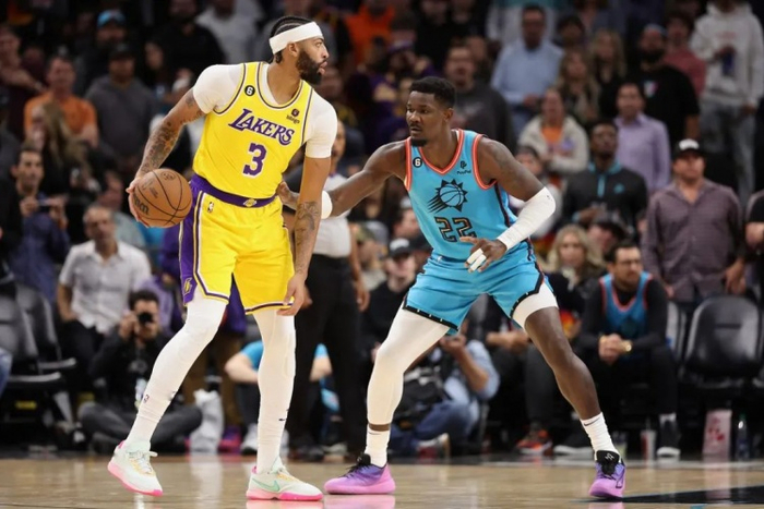除了布克大量简单掩护后的干拔硬解,太阳的比赛没有“集权式”的单点逆天输出,威胁无处不在。但太阳打的并不复杂,他们威胁多,是因为每个人在特定的区域的确有得分能力。一次简单的西班牙或者牛角起手,两个底角射手适时上提或者溜底线清空一侧,中路大个子顺下来到甜点区形成威胁,另外两个点在罚球线以上,均可以完成高难度干拔,还能向甜点区的大个子输送炮弹,或者分球给两翼,交由锋线后续处理。除了定点三分,锋线球员也可以运球突破,完成急停中距离,或者与等待在篮下的大个子完成连线。