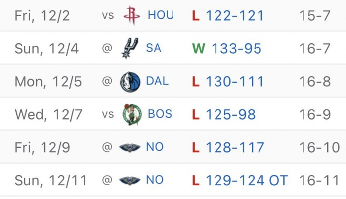 至此,近6场比赛中太阳输掉了5场,唯一一场胜利是战胜马刺。