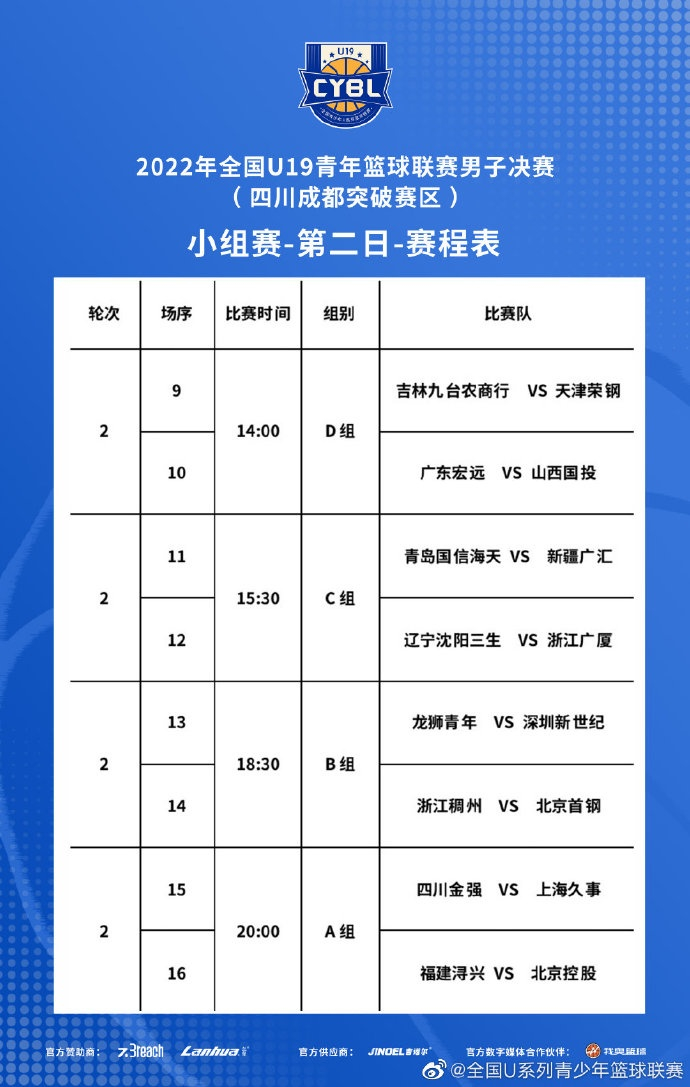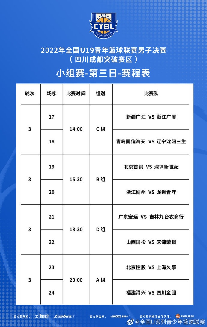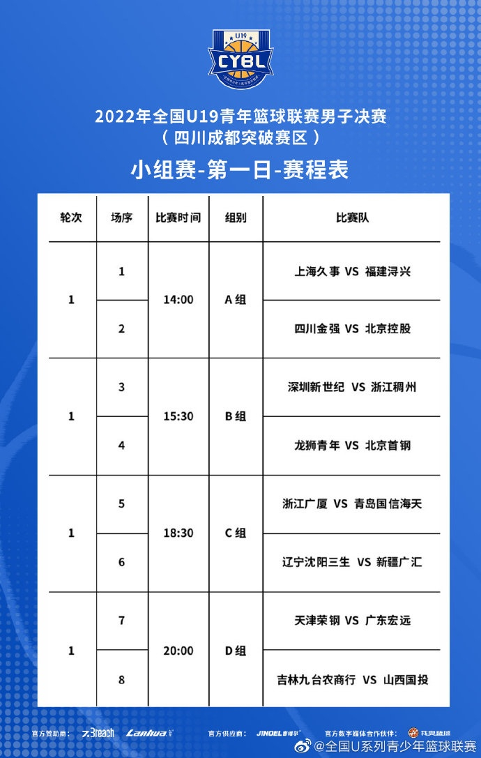 直播吧12月19日讯 明日,2022年全国U19青年篮球联赛男子决赛(四川成都突破赛区)将在成都龙泉驿拉开战幕。